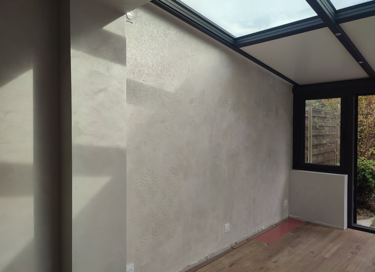 Je suis spécialisée dans la pose de peintures et d'enduits décoratifs aux aspects variés : naturels de la chaux avec ou sans incrustation, nacrés, sablés, paillettés, métalisés, béton ciré, argile, imitation tissu alcantara, rouille et vert de gris, pierres, etc...